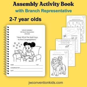 2-7yo Assembly with Branch Representative 2025 2026 JW Activity Book 'Hear what the spirit says to the congregations' Printable PDF Download