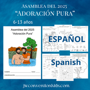 Spanish Español 6-13 años “Adoración Pura” JW Asamblea del 2025 Pure Worship Convention Activity Book Printable PDF Download