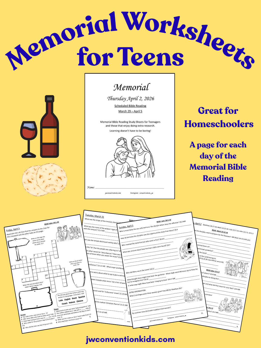 These study sheets will help your teenager learn about the incredible sacrifice Jehovah and Jesus made for us. For each day of the assigned memorial bible reading (March 29-April 5), there are one or two study sheets, which help them navigate the Study Bible and learn that bible study can be very satisfying and enjoyable.