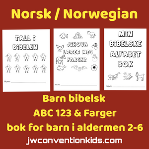 Norwegian / Norsk Barn Bibelsk ABC 123 & FARGER arbeidsark/-bok for barn i alderen 2-6